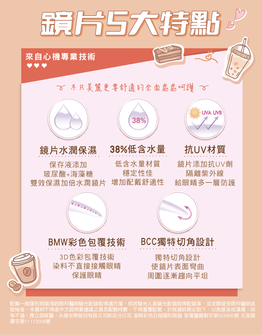 鏡片直徑14.2 著色直徑13.8 基弧8.7 含水量38%